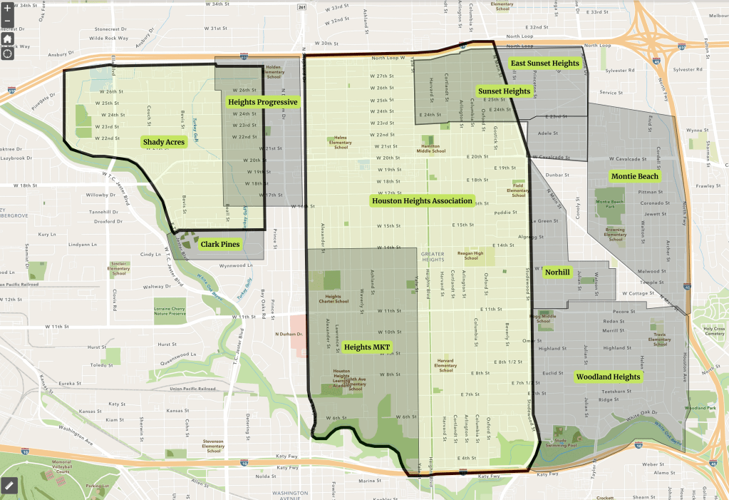 The Heights, a historic and vibrant area in Houston, is generally bounded by White Oak Bayou to the west, Loop 610 to the north, I-45 to the east, and I-10 to the south. Within this larger area, the Houston Heights Association (HHA) serves as the steward of the historic heart of the Heights, preserving its rich architectural heritage, walkable streets, and strong sense of community.